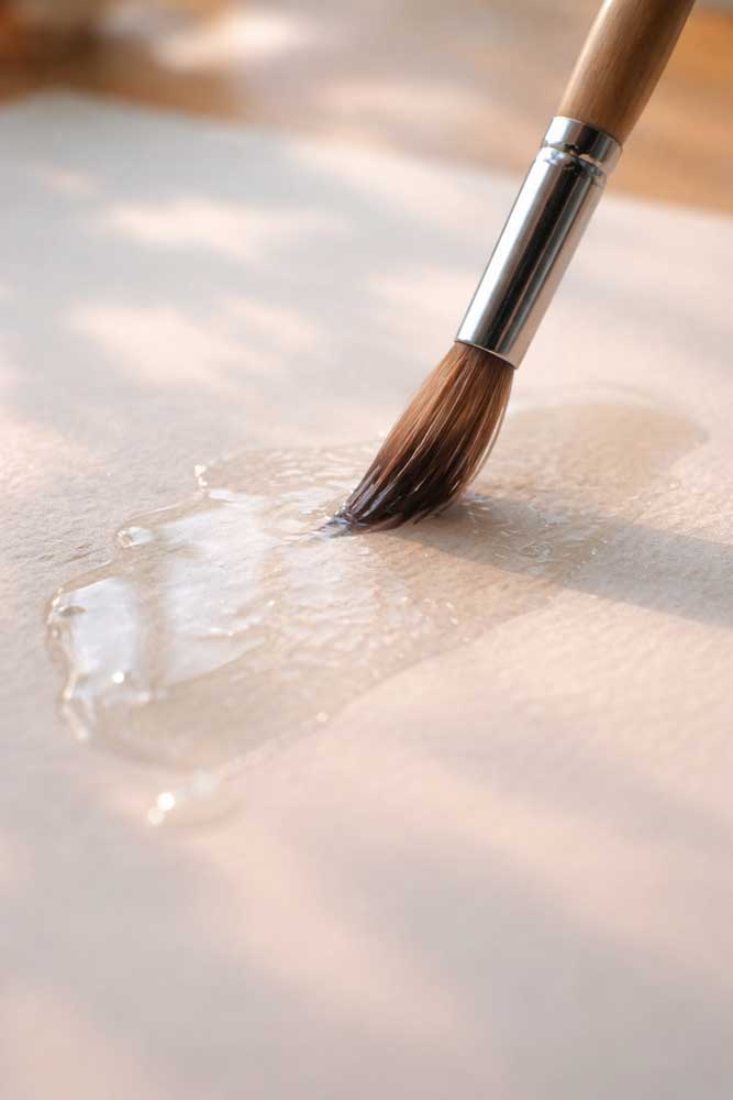 Setze mit dem Pinsel etwas Farbe auf das Papier.
