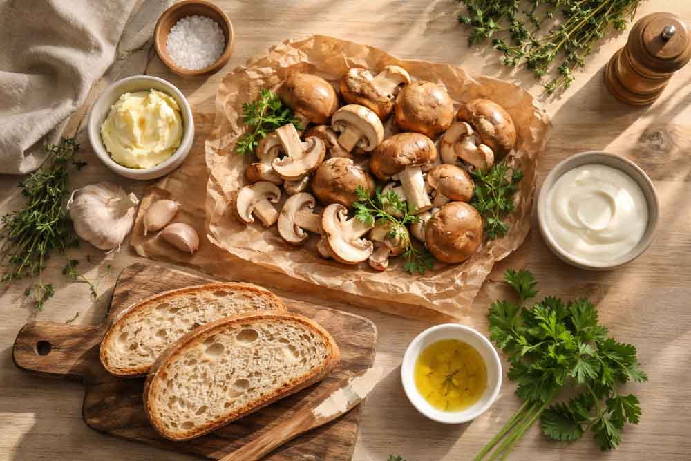 - Pilz-Mischung auf dem warmen Brot verteilen – fertig!