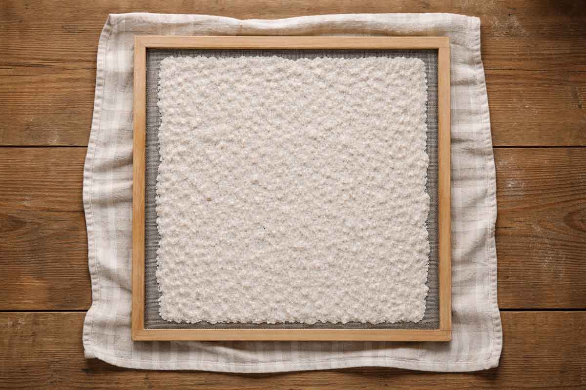 - Verteile den Papierbrei darauf