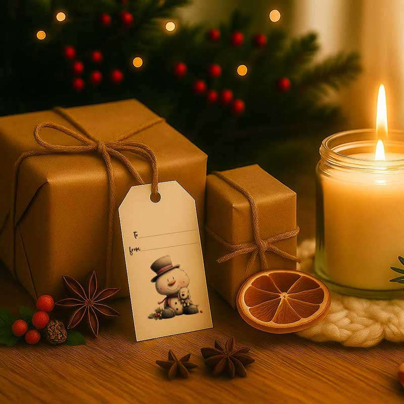 Der niedliche Schneemann sorgt sofort für winterliche Stimmung und verleiht jedem Päckchen eine liebevolle, festliche Note. Das praktische „To/From“-Feld macht das Beschriften besonders einfach und stilvoll.