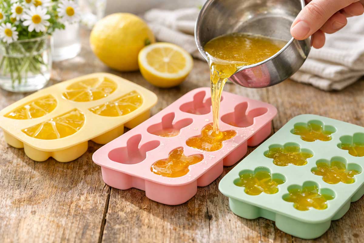 - Silikonform* (z. B. Zitronen, Häschen oder Blumen)